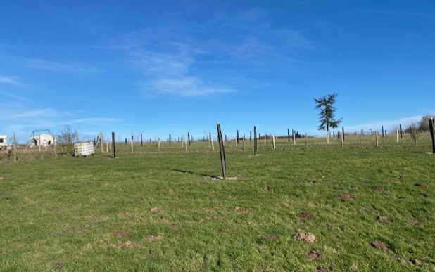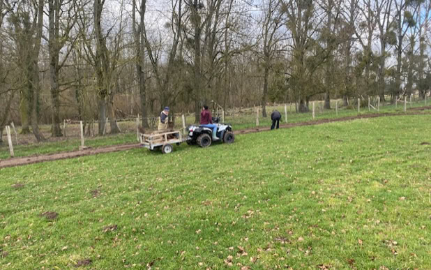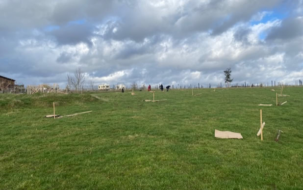 Menée de concert avec l’association Fermes d’Avenir, qui assure le lien entre des entreprises finançant les arbres et des structures agricoles souhaitant développer des projets de plantation à impact environnemental positif, cette action a permis la mise en terre d’un petit pré-verger d’une cinquantaine d’arbres fruitiers (pommiers et pêchers), ainsi que la plantation de 400 mètres de haies fourragères multi-espèces.
