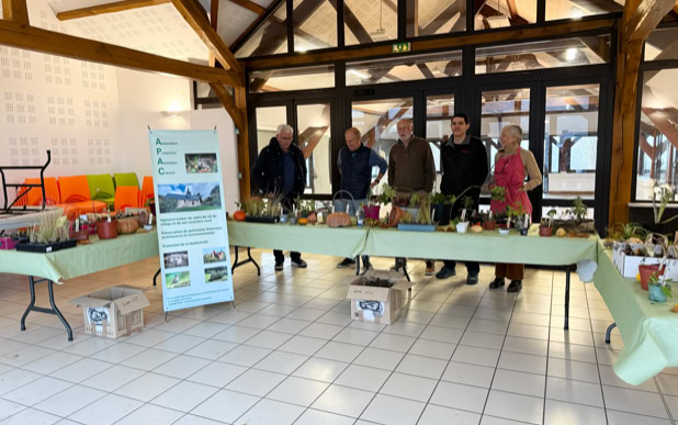 Dimanche 16 novembre, le ciel bien gris d’automne conjugé au brouillard n’incitait guère à sortir… Et pourtant, Craventais et habitants des villages alentour (Villegats, Villiers-en-Désœuvre, Jouy-sur-Eure) se sont déplacés jusqu’à la Salle des Fêtes de notre village où se déroulait la Bourse aux Plantes organisée par l’APAC.