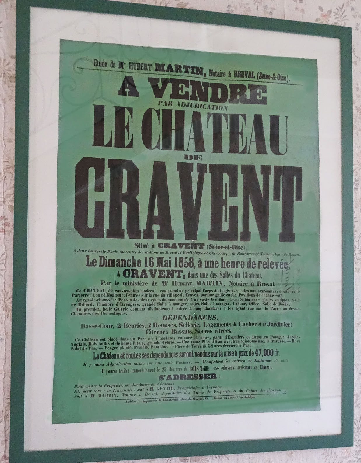 Nouvelle vente en 1859. Grâce au notaire de Bréval, Maître Gallardon qui a exploré les greniers de son prédécesseur en reprenant l’Étude en 1995, nous possédons l’affiche annonçant cette vente par licitation pour le mois de mai. Cette affiche nous apprends, entre autres qu’antérieurement la grille d’entrée était flanquée de deux pavillons dont toute trace a disparu.