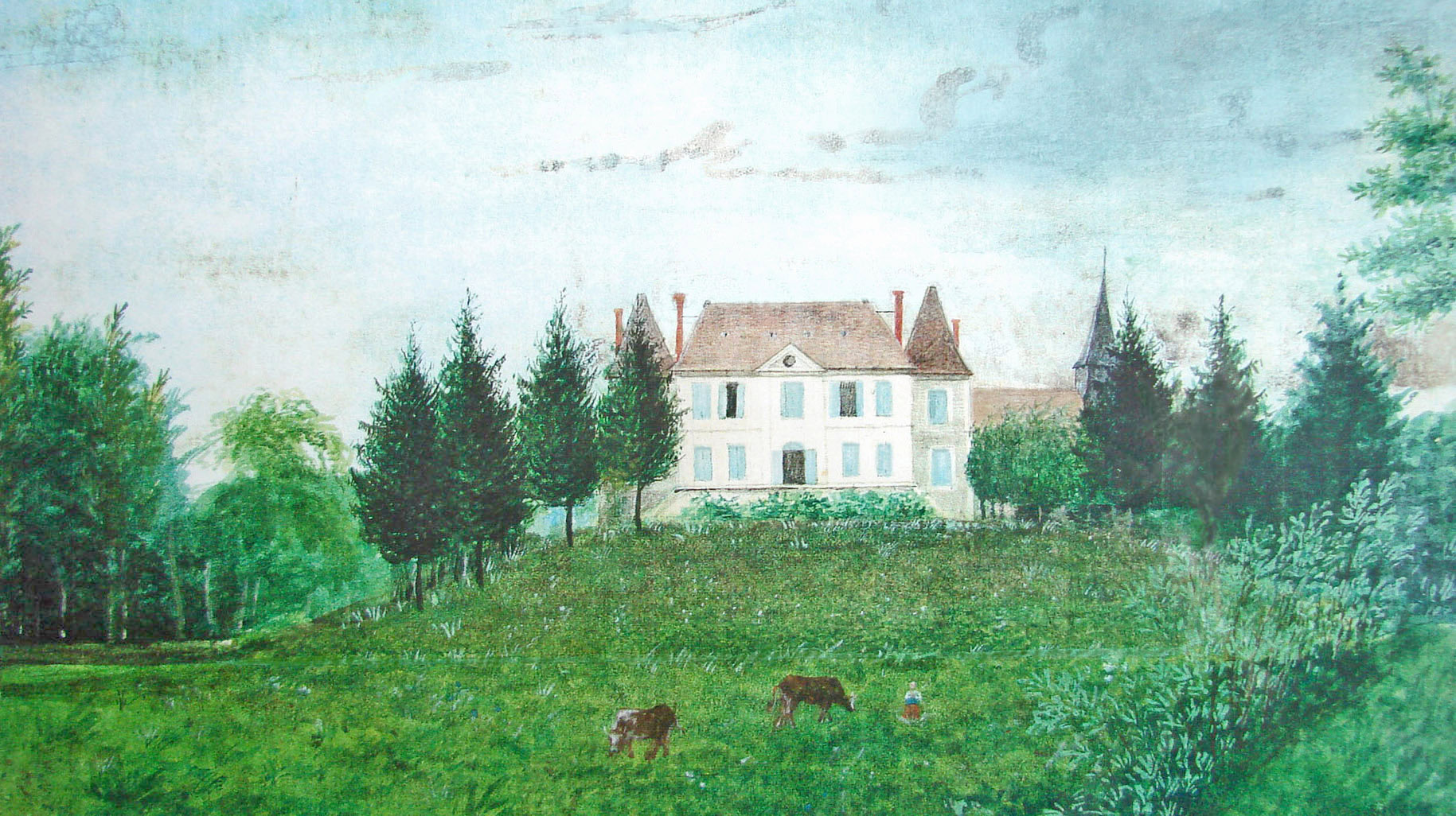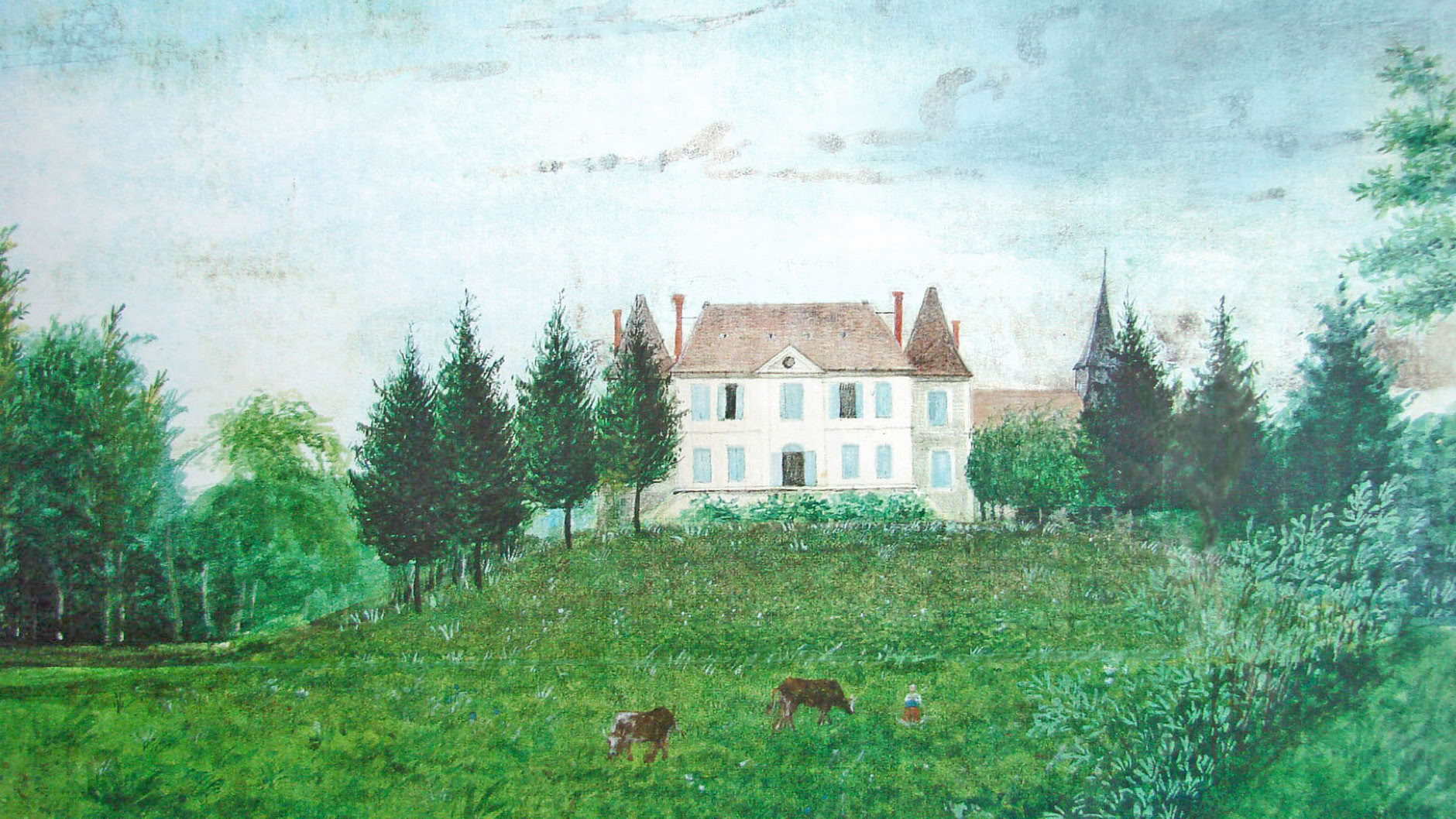 Sur la place du village, encadré par la vieille église et la Mairie, apparaît le château derrière sa grande grille de fer forgé. Il est de proportions modestes et nous connaissons ses origines grâce à quelques notes écrites par ma mère, Madame Raoul Monod, née Broca, et conservées dans une chemise intitulée «Historique du château».